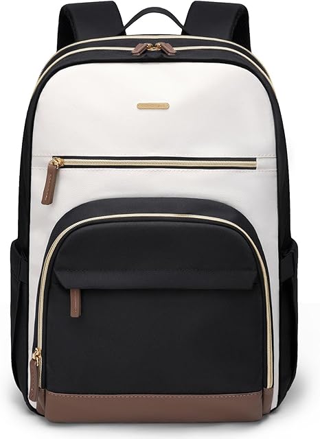 TENSTAR Laptop Backpack for Women, Computer Backpack Fit 16 Inch Notebook, Large Capacity College Backpack Bookbag Casual Daypack for Travel(Apricote/Black With Beige)